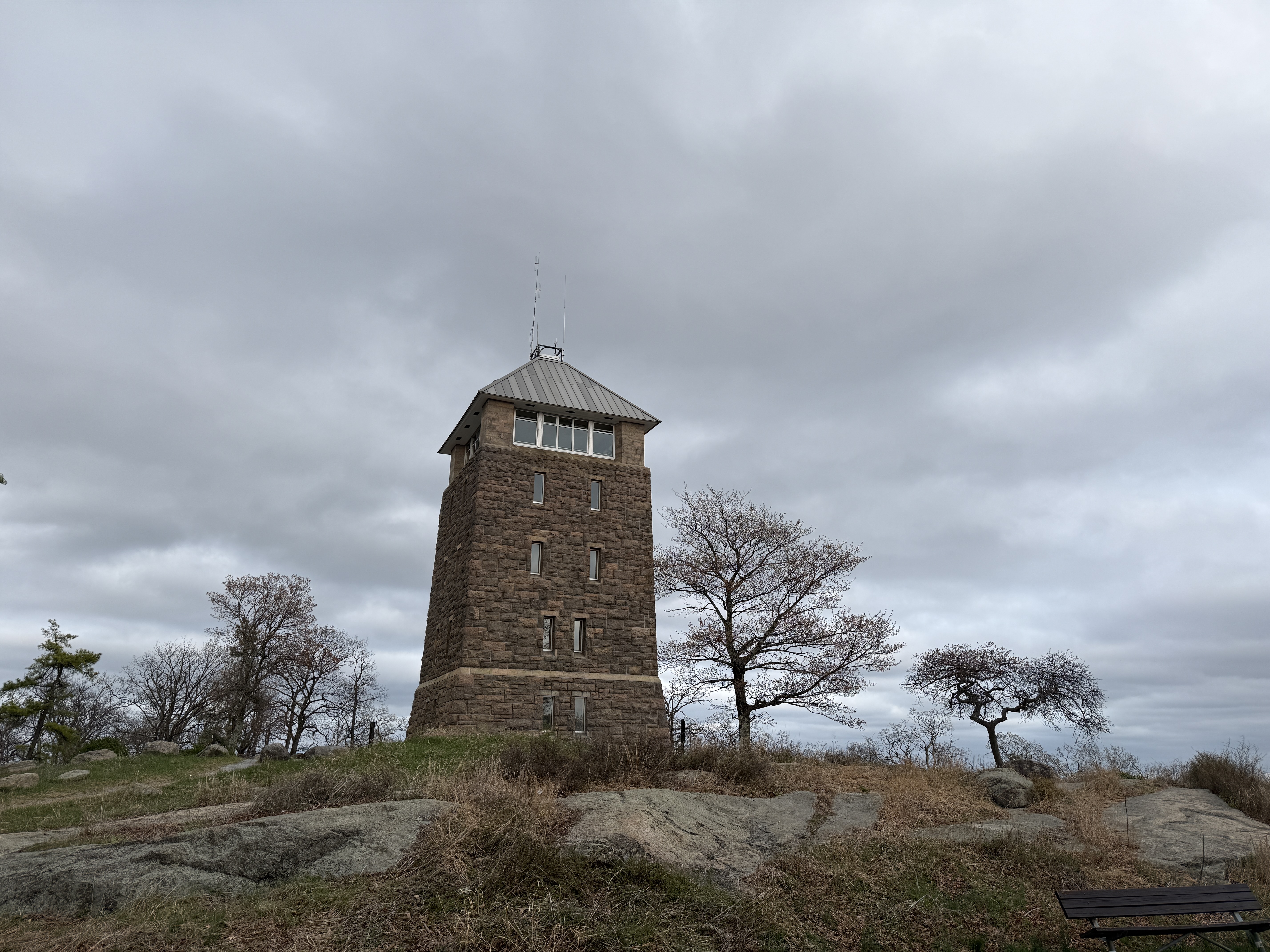 After the grueling climb, I finally made it to the top and took some pictures of the Perkins Memorial Tower (an old fire tower that is now mostly a tourist attraction) and the attractive effect of the late-day sun low in the sky above the forest. But I didn’t have much time to enjoy the scenery, because I made a rather startling discovery: my plan for the day contained a near-fatal blunder! You see, I had assumed that I would be able to catch a train back to Grand Central from Manitou at any time of the day, because from my previous hikes in the Hudson Valley, I knew that the Metro-North runs hourly well into the night. What I had failed to realize was that Manitou specifically is a limited-service station, with only a handful of trains stopping each day. The last train scheduled to stop there for the day was at 7:33 pm, which gave me less than forty minutes to get there! Would I be able to make it in time?6