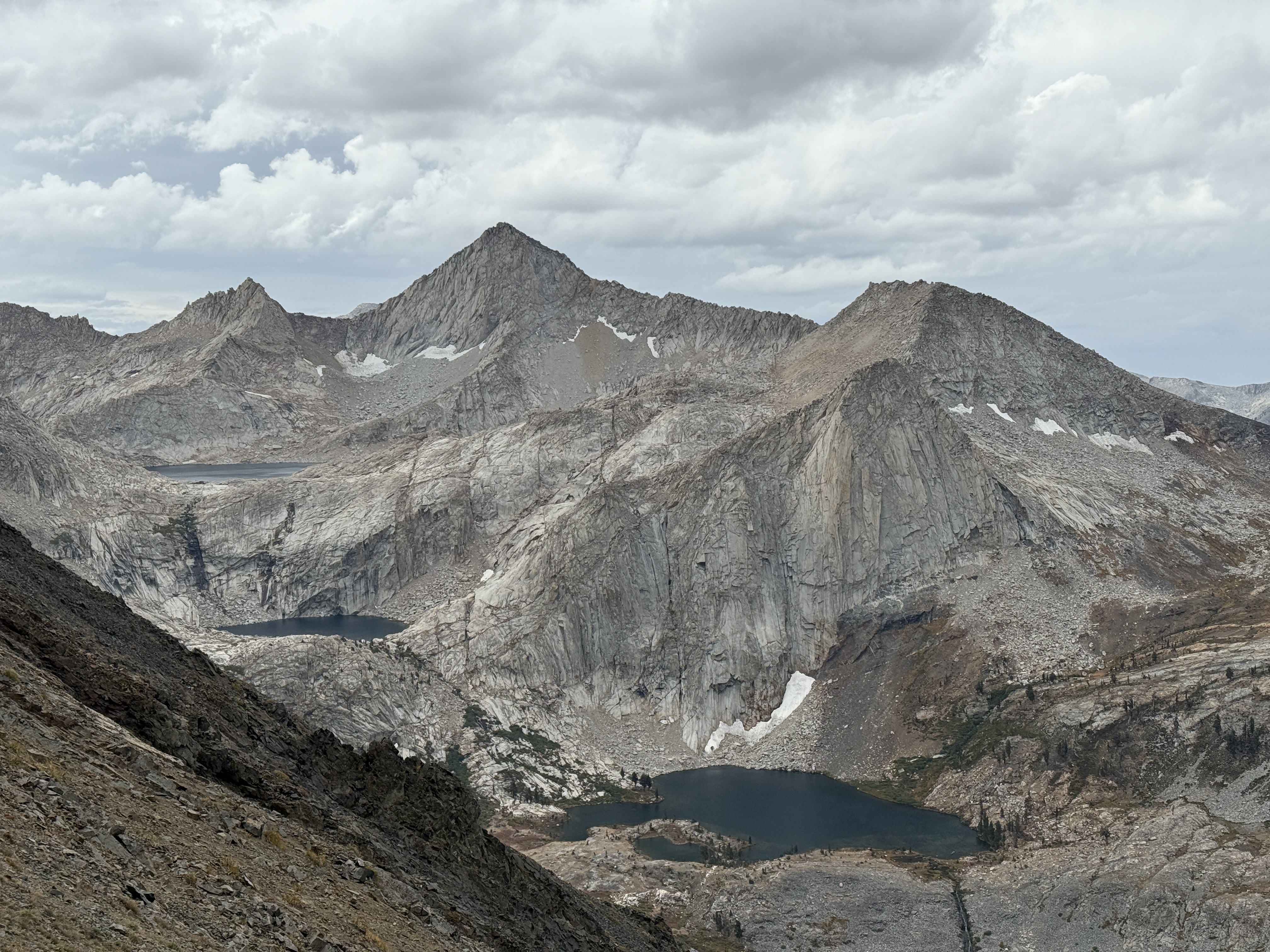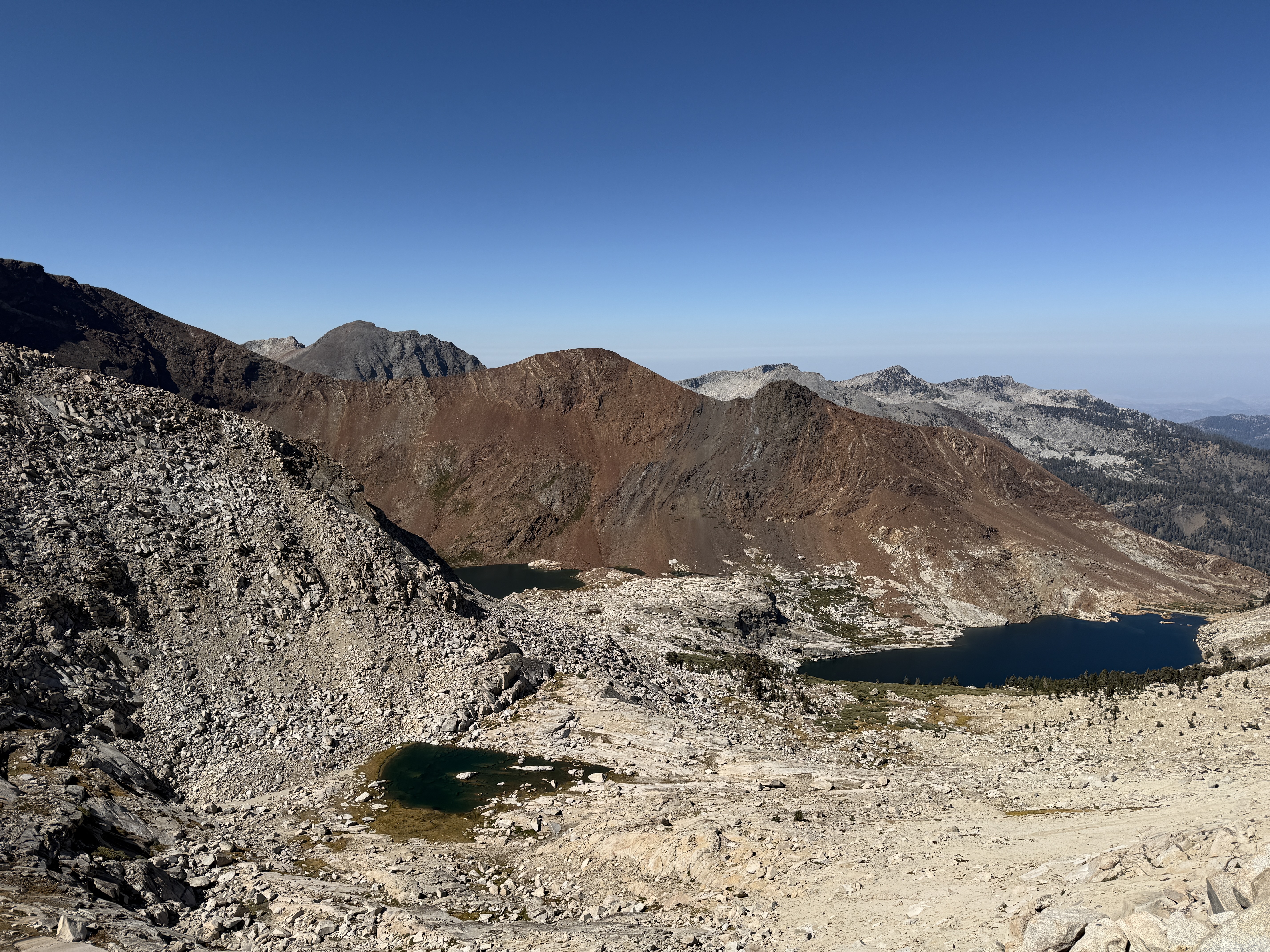 The day started with a really enjoyable climb up to Black Rock Pass from the east side. As we gained elevation and climbed up onto the exposed rock, we were gifted with incredible views of the remaining Little Five Lakes below, and more views of the Kaweah Range behind. I discovered a very curious thing during this climb: my lips were getting quite dry—not quite bleeding, but very uncomfortable. I tried licking my lips and drinking water more often, but to no avail. But then, I had an absolutely brilliant idea: I borrowed Ray’s ChapStick, and all of a sudden my lips were fine! It’s actually kind of magical how well that worked: apparently, if you put ChapStick on your lips, they stop being dry or something. I impress myself with my discoveries sometimes.9