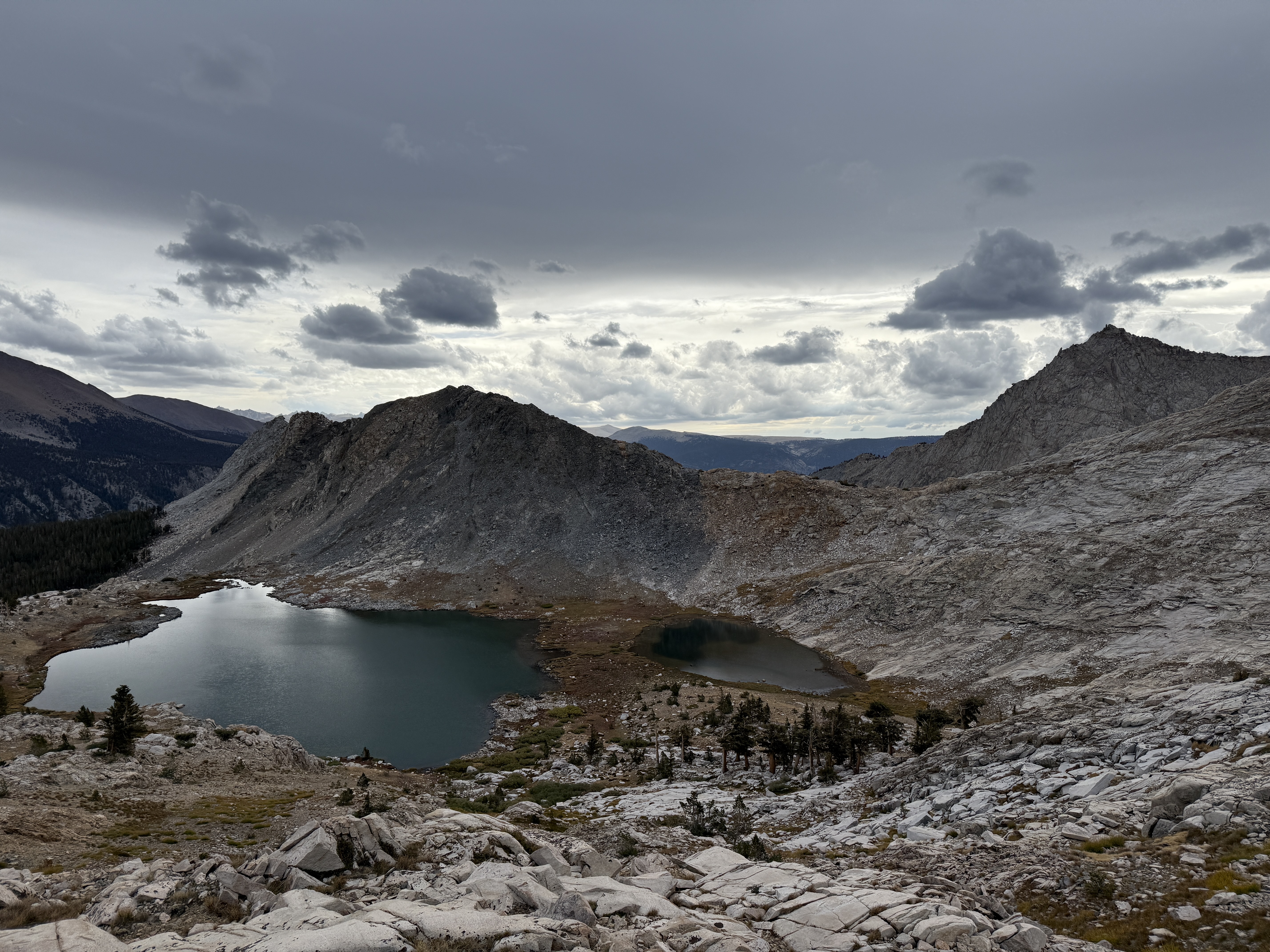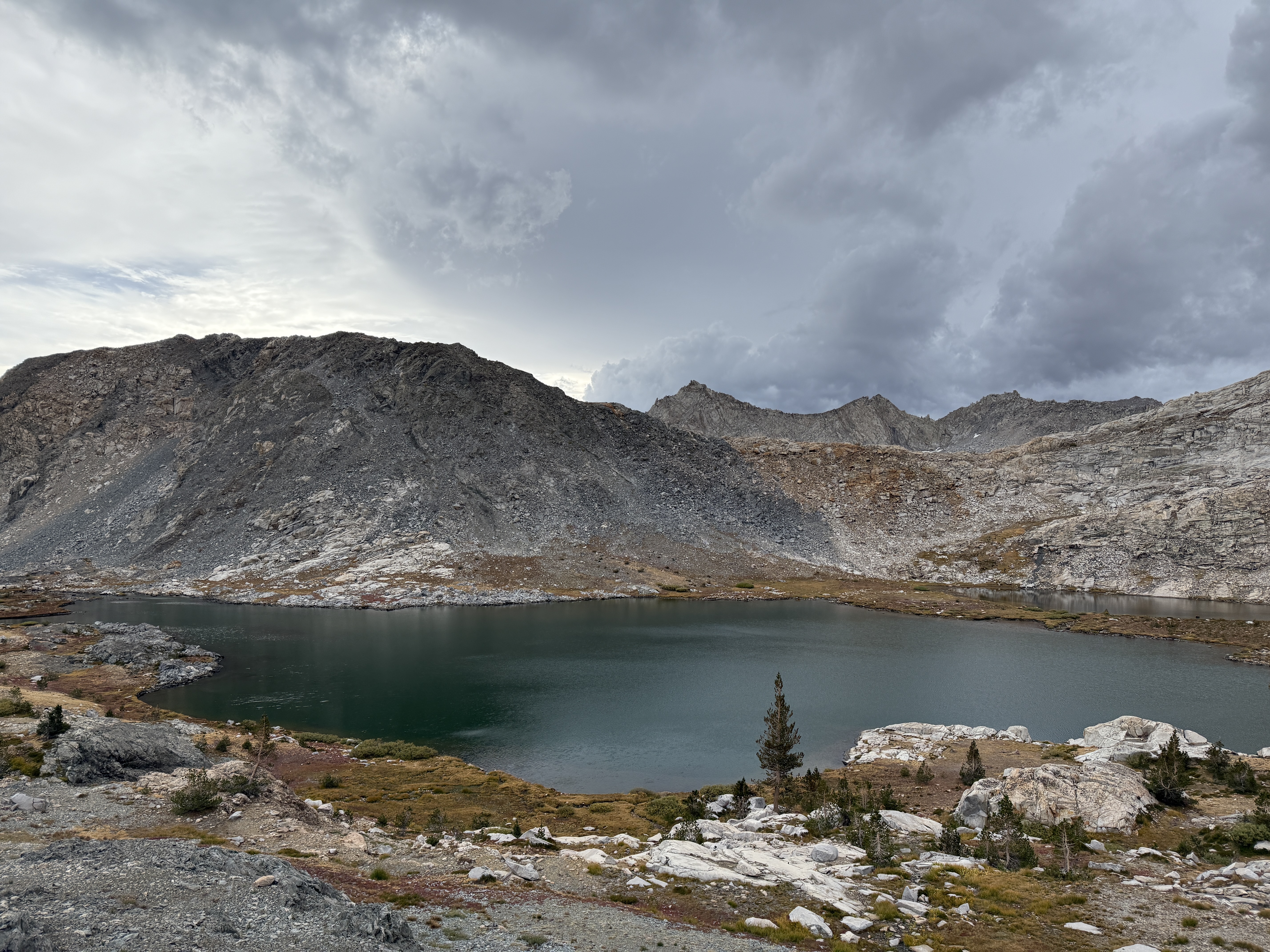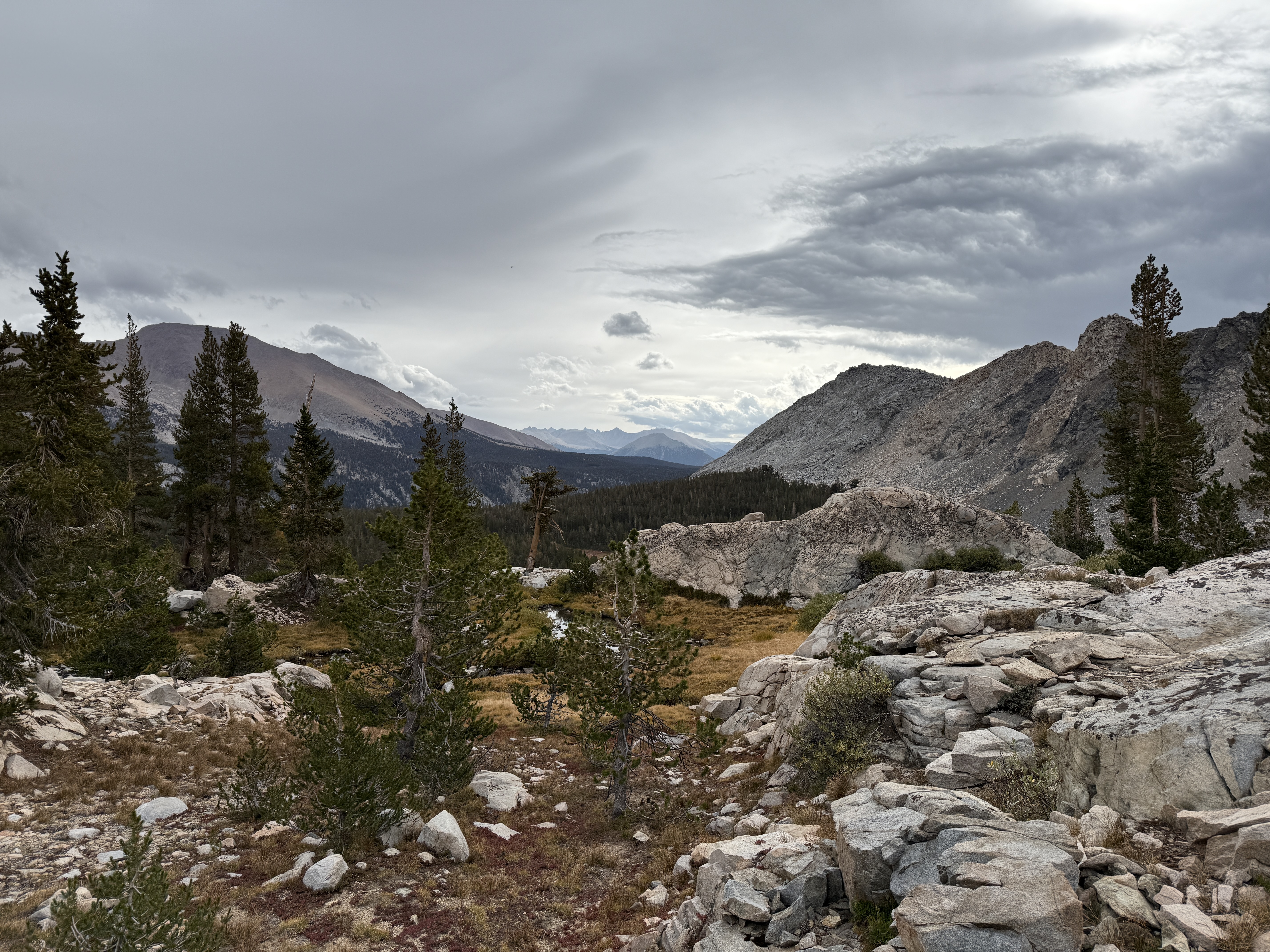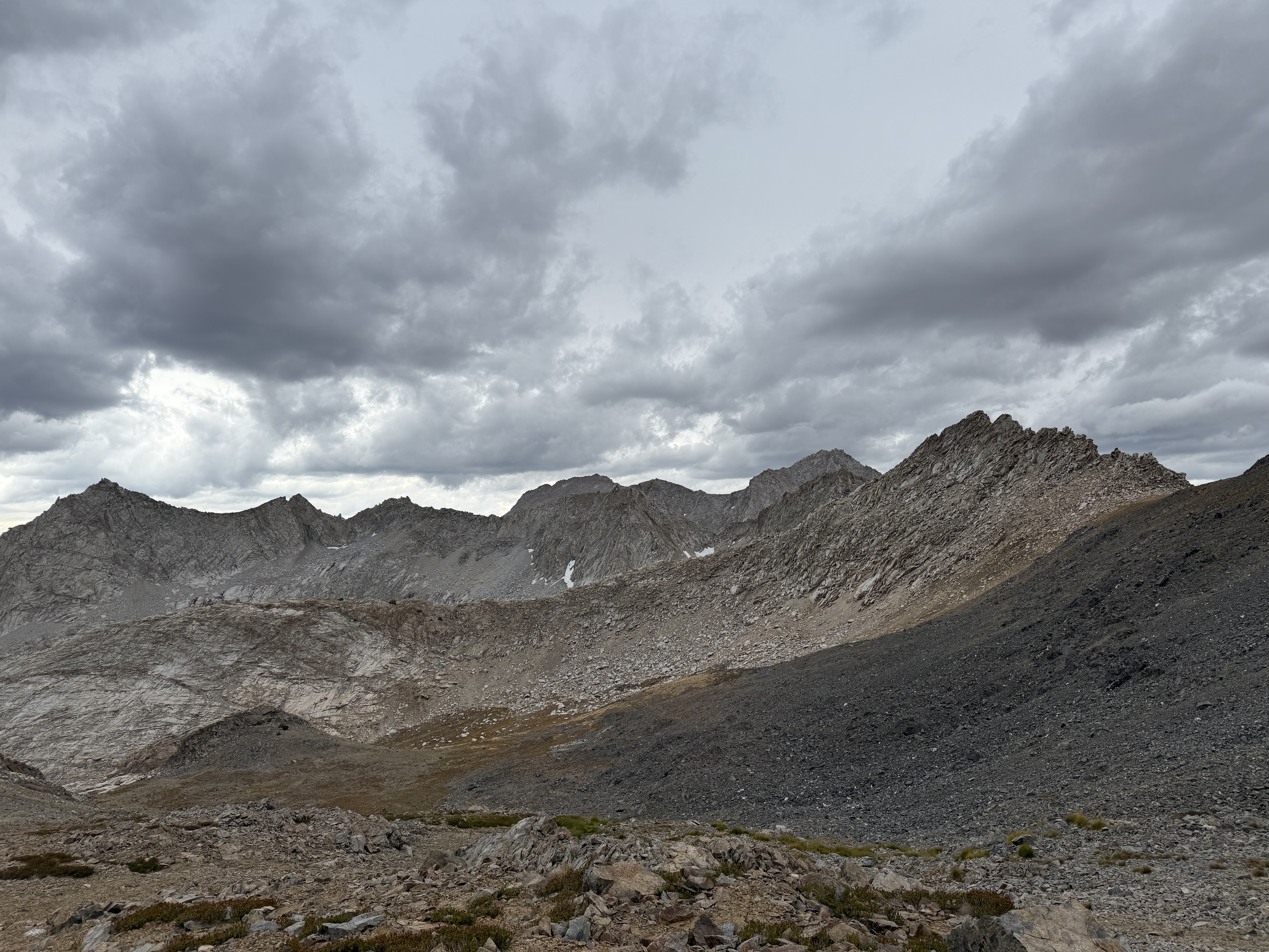 Other than this totally unforced error, the night was mostly pretty good. I continued my quest to try to become a back sleeper (which is much more comfortable when on a sleeping pad), although I didn’t totally succeed. The only real negative thing that happened the third night: in the evening, some pretty heavy cloud cover started to roll in, which did not bode well for the next two days of hiking. A weather report on Ray’s inReach confirmed that we should expect scattered rain throughout the rest of the trip. Oh well, I was not looking forward to having to set up camp in the rain the next day, but I guess you can’t call yourself a real adventurer if you only go out in fair weather.