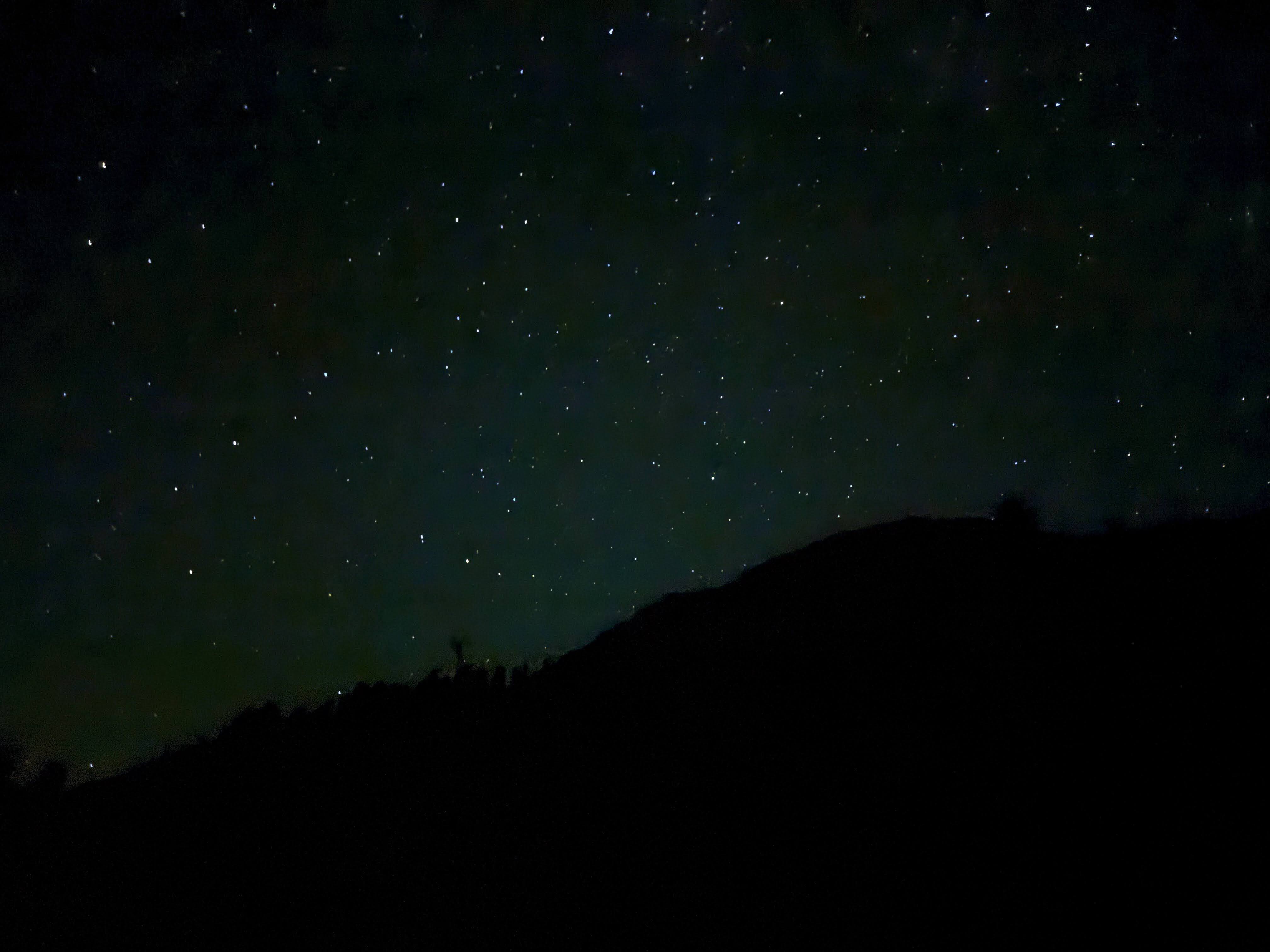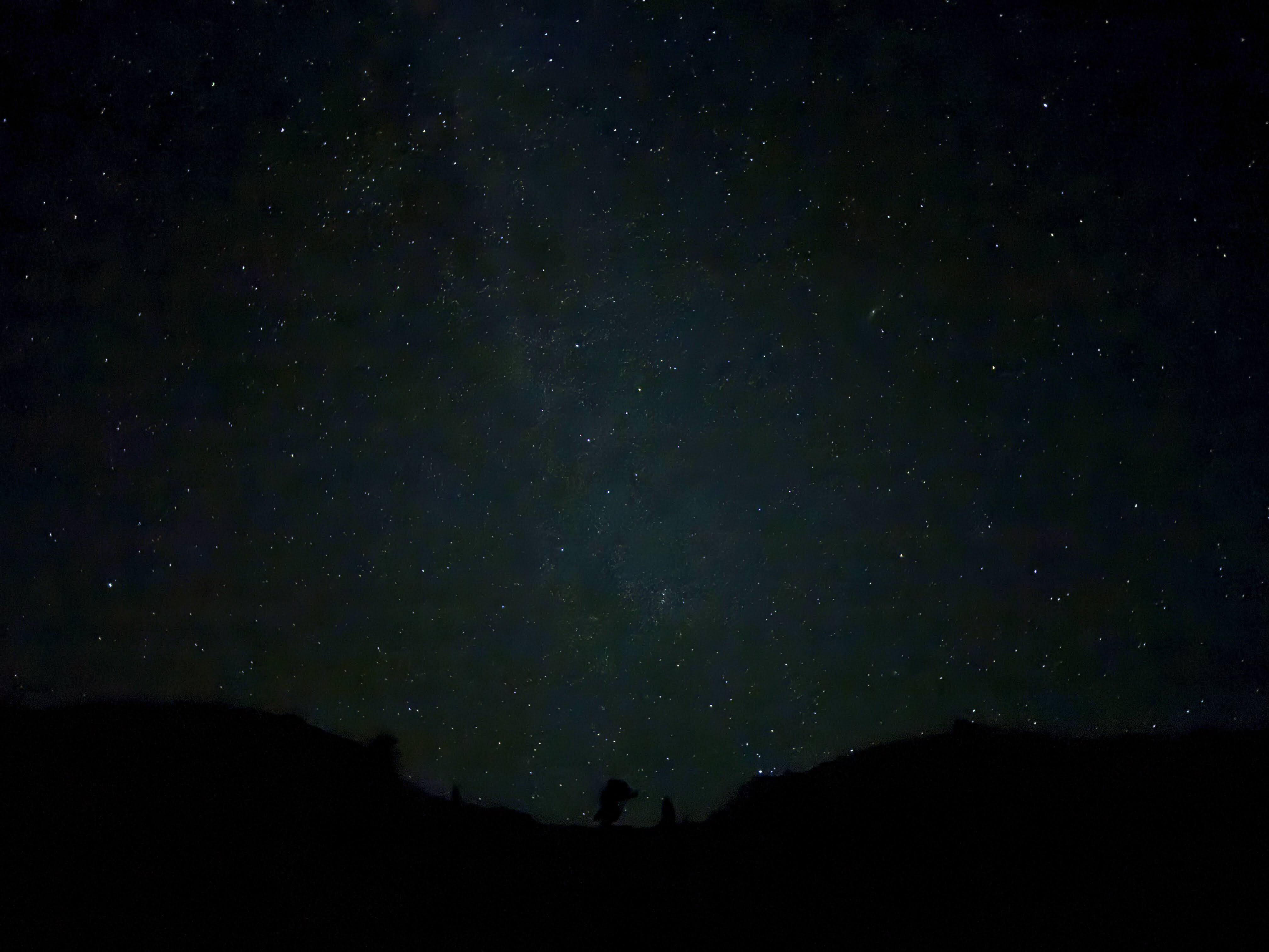 It gets pretty dark pretty quickly in the mountains after sunset, so after dinner and a few camp chores, we went to bed fairly early. This meant that I had to wake up in the middle of the night to use the bathroom, but I didn’t mind at all, because I was treated to one of the only things more spectacular than an alpine lake: the Milky Way above an alpine lake on a clear summer night! I tried to get the best pictures I could with my phone camera, but unfortunately I am a terrible photographer, so you’ll have to make do with my bad pictures. Any anyway, even if I were a good photographer with a fancy camera, there’s only so much that a picture can capture; we have not yet invented the technology to capture that deep sense of smallness you feel looking up at the universe and seeing “a thousand points of light” embedded in an indescribably large night sky.7 Though maybe the VR headset companies are working on it…