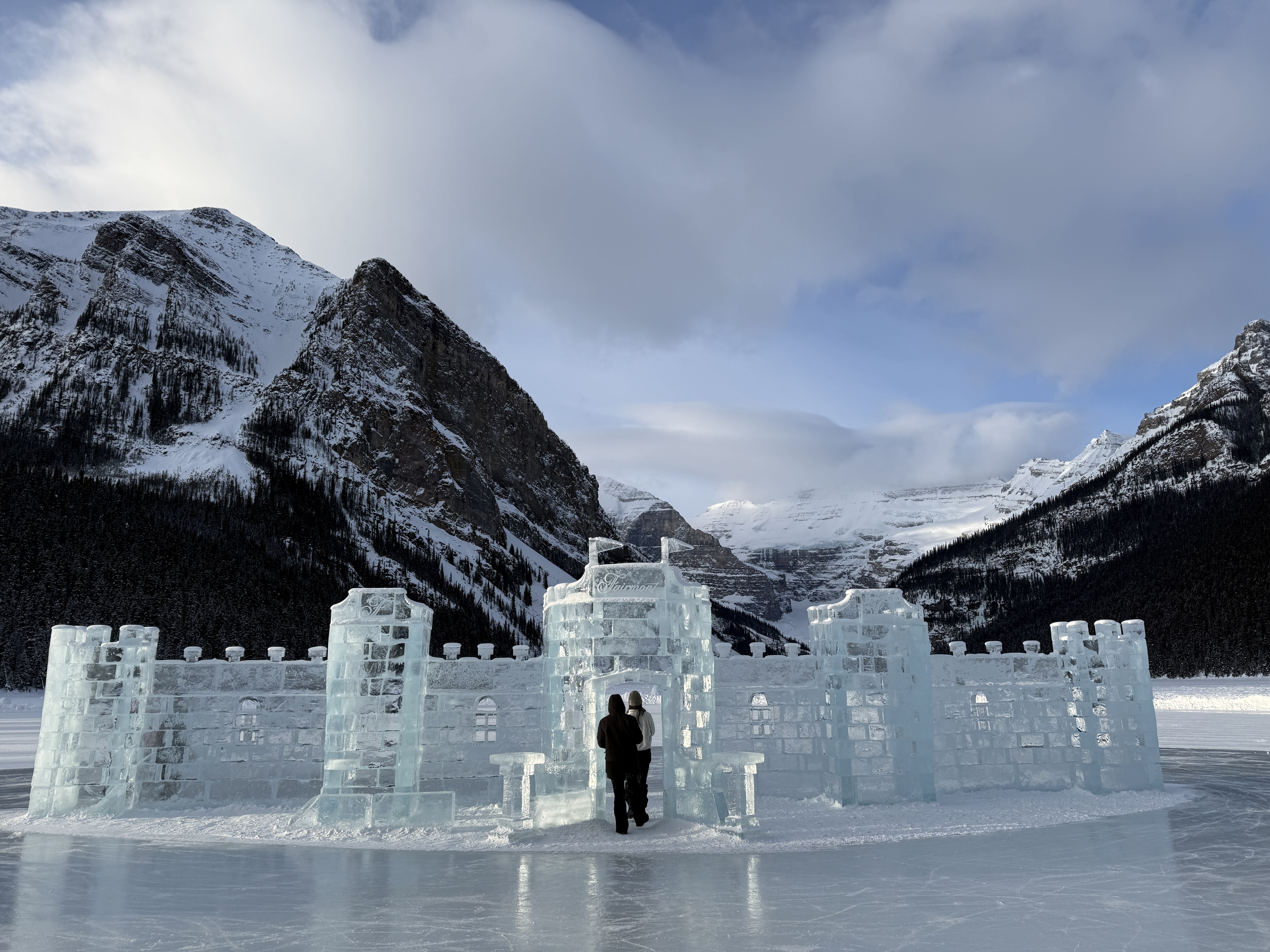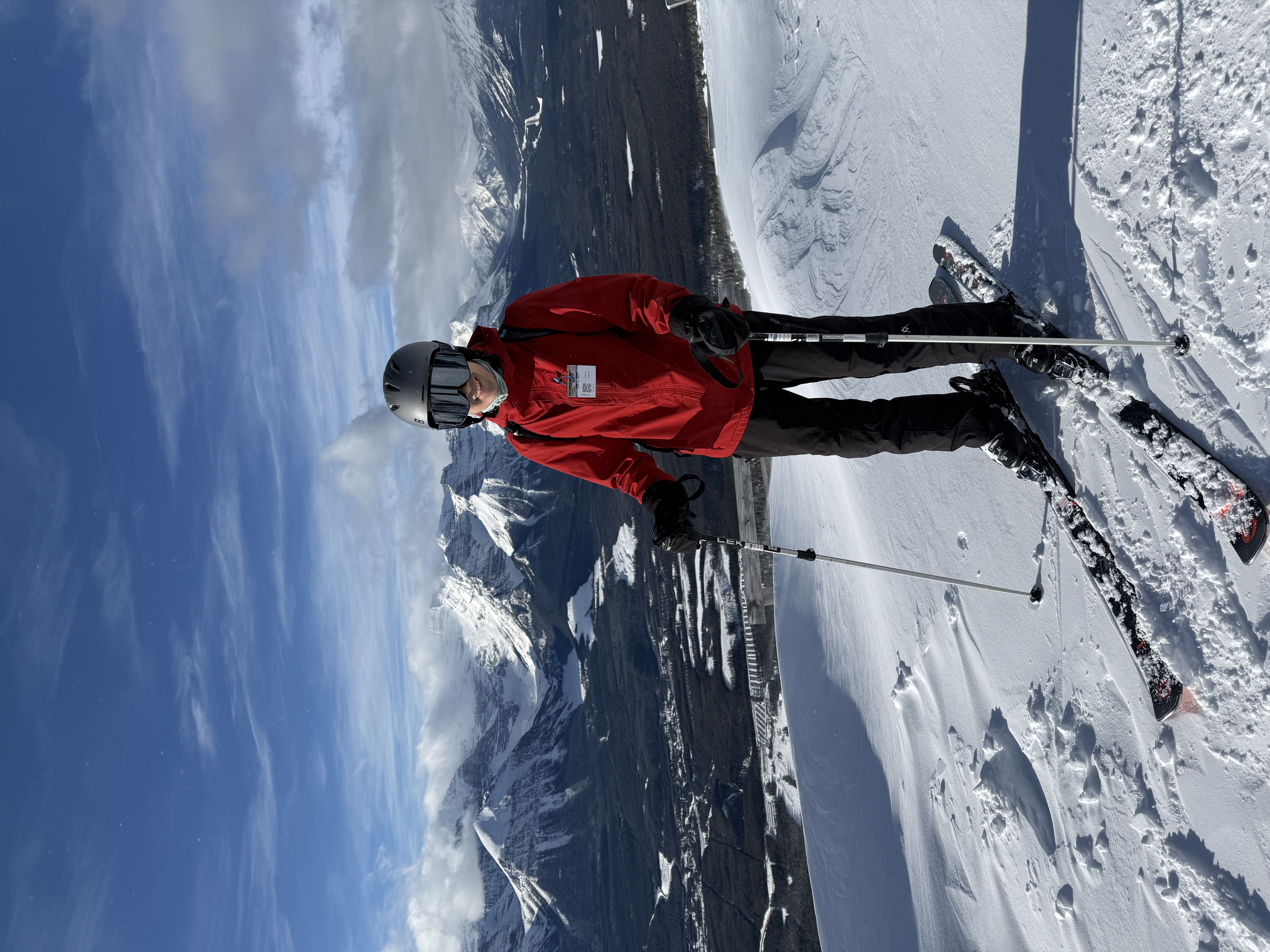 The second day, we were treated to absolutely pristine conditions: a bit of fresh powder from the snowfall the day before, and mostly-clear skies with patches of cloud coverage. It wasn’t a perfect bluebird day, but honestly, I think the occasional cloud adds a bit of visual interest to the scenery. This made the drive from Banff over to Lake Louise incredibly scenic; Ji put all of us to work taking pictures and videos of the drive for the shared album. And as if the view on the drive weren’t pretty enough, the view from the mountain itself was even better. The Canadian Rockies are just stupidly beautiful.